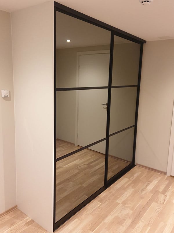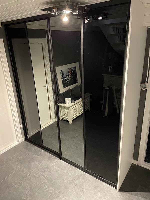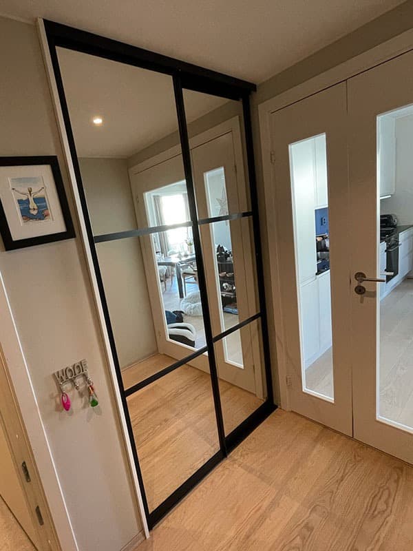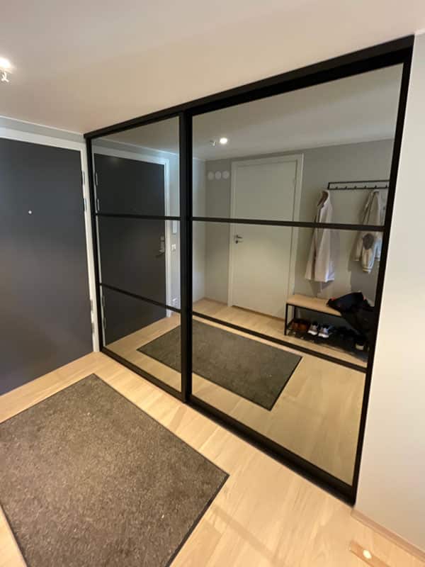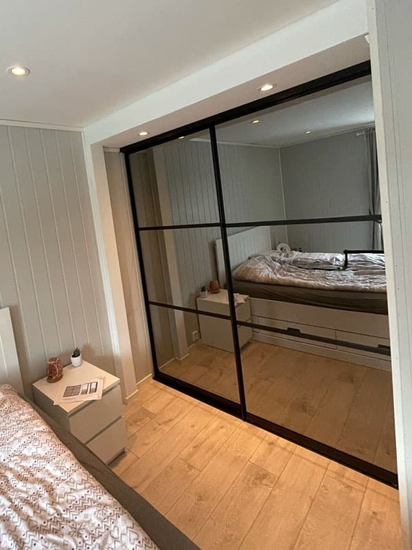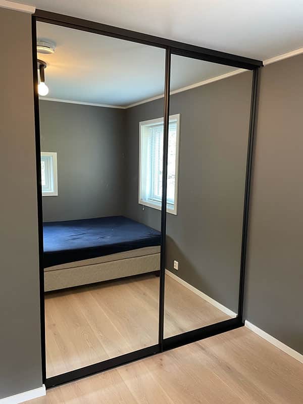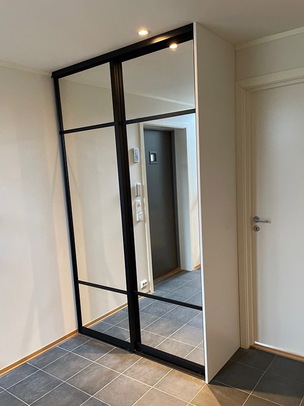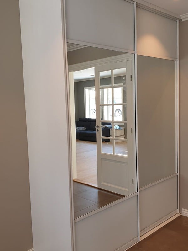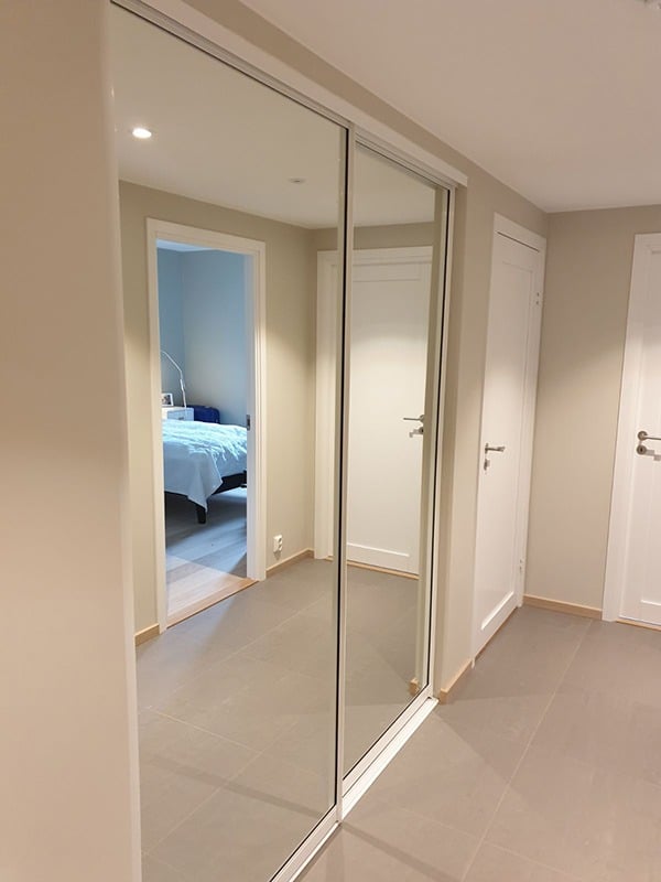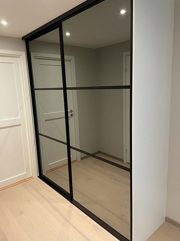 Garderobemekka AS specializes in high-quality, tailor-made sliding door wardrobes. Our specialty is exclusive sliding doors with combinations of mirrors and glass, as well as transoms as decoration. With us, you get the best total price on the market for high-quality sliding door wardrobes with complete fittings, fully assembled by our professionals.