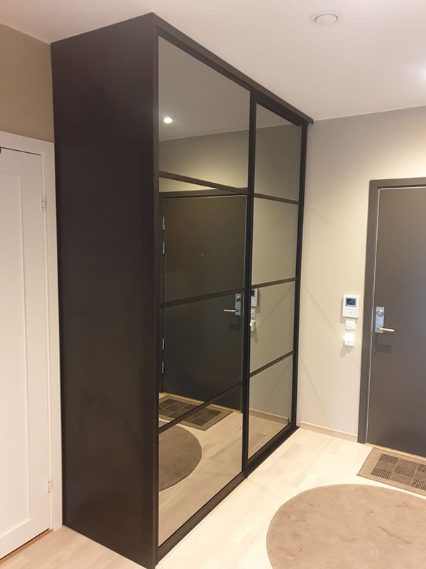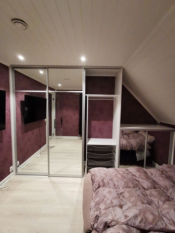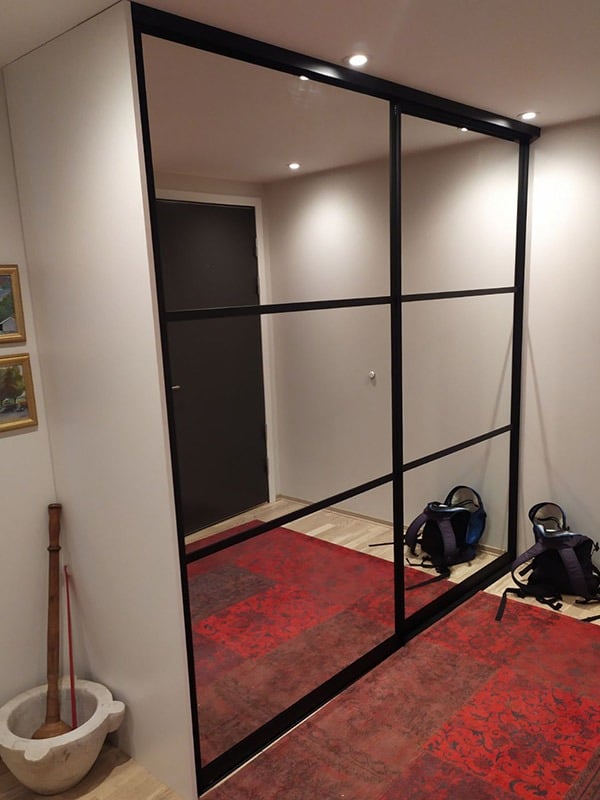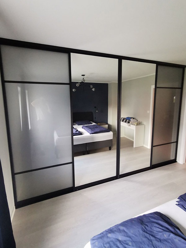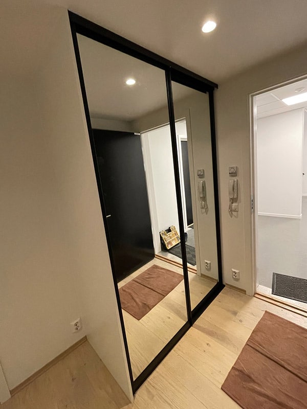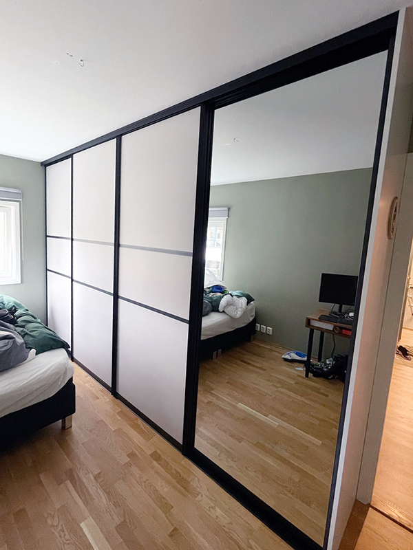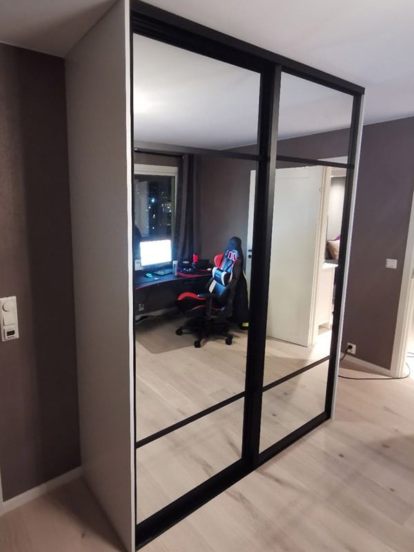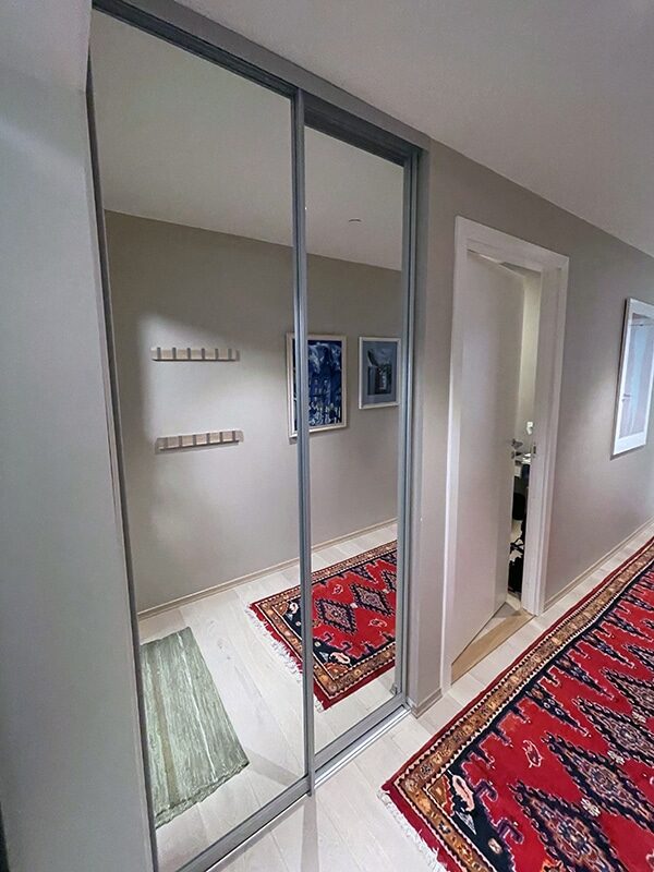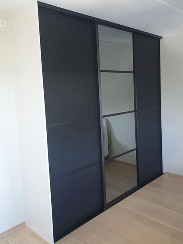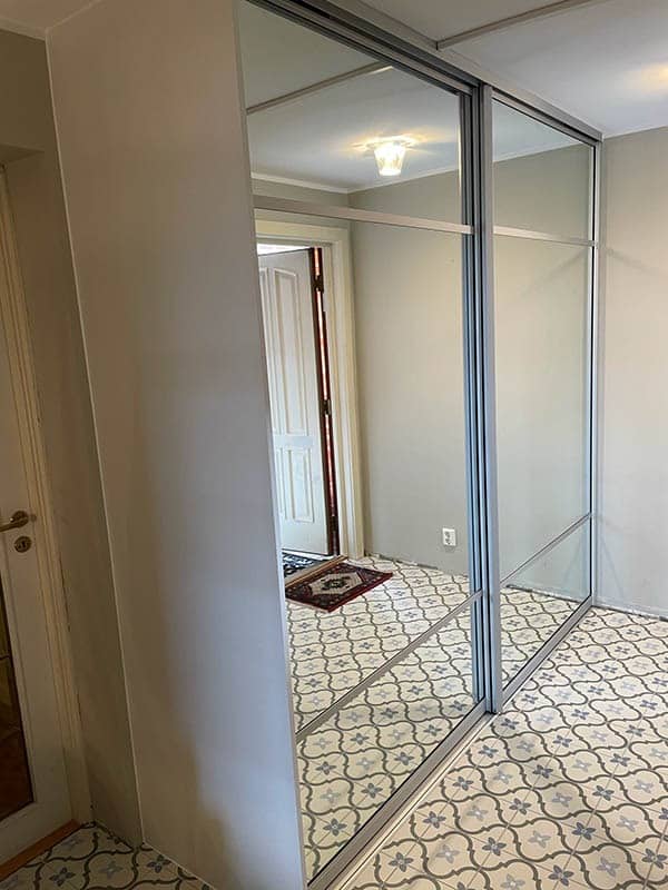 Garderobemekka AS specializes in high-quality, tailor-made sliding door wardrobes. Our specialty is exclusive sliding doors with combinations of mirrors and glass, as well as transoms as decoration. With us, you get the best total price on the market for high-quality sliding door wardrobes with complete fittings, fully assembled by our professionals.