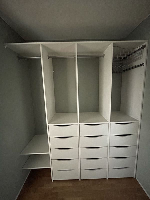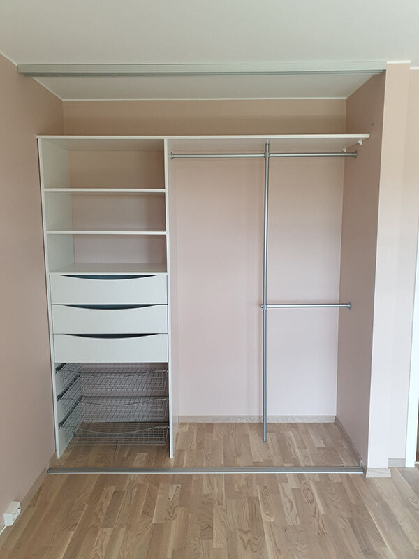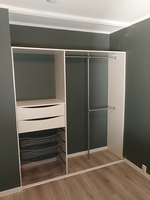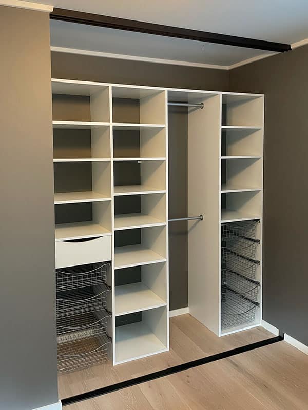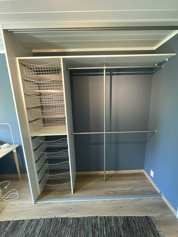 Our employees have extensive experience from the wardrobe industry and are committed to making you feel safe throughout the process. That’s why we only use suppliers who deliver high quality, fast delivery times and favorable prices. Our wardrobe specialists will help you plan and design your dream wardrobe and Garderobemekka’s own fitters know our products like the back of their hands, ensuring a 100% finished result.