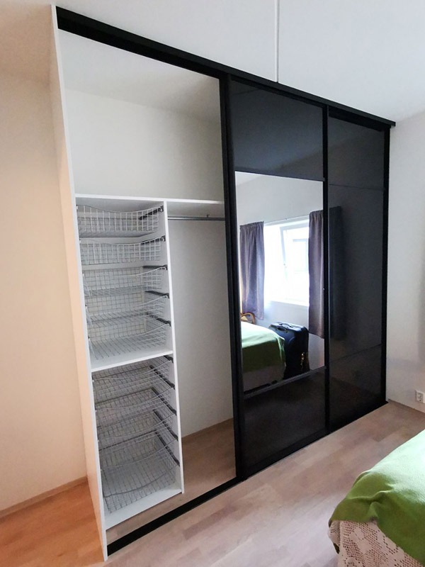 Garderobemekka AS specializes in high-quality, tailor-made sliding door wardrobes. Our specialty is exclusive sliding doors with combinations of mirrors and glass, as well as transoms as decoration. With us, you get the best total price on the market for high-quality sliding door wardrobes with complete fittings, fully assembled by our professionals.