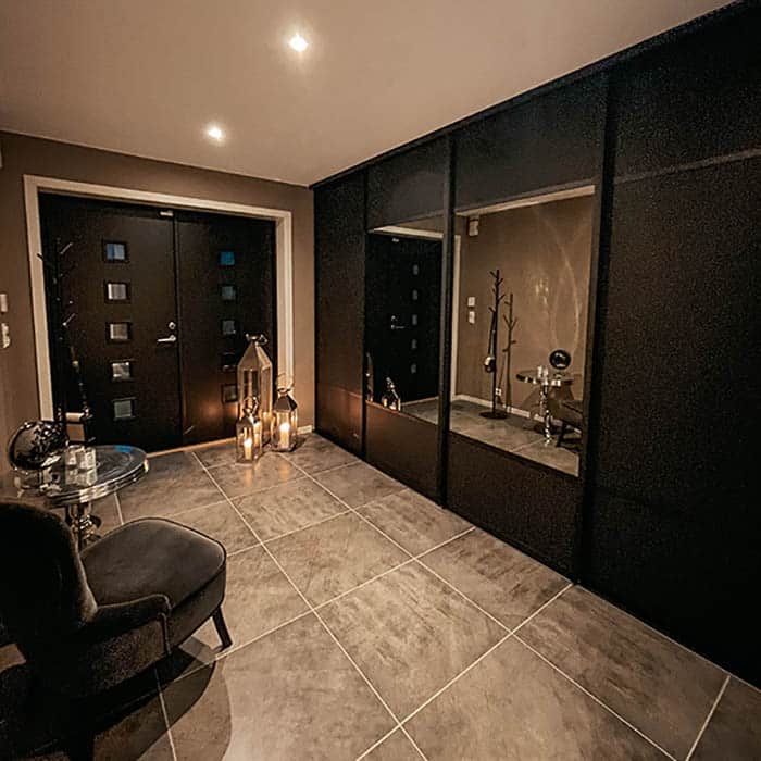 Dark sliding doors with black details are very dominant in the trend picture right now. At Garderobemekka you can get the style you want.