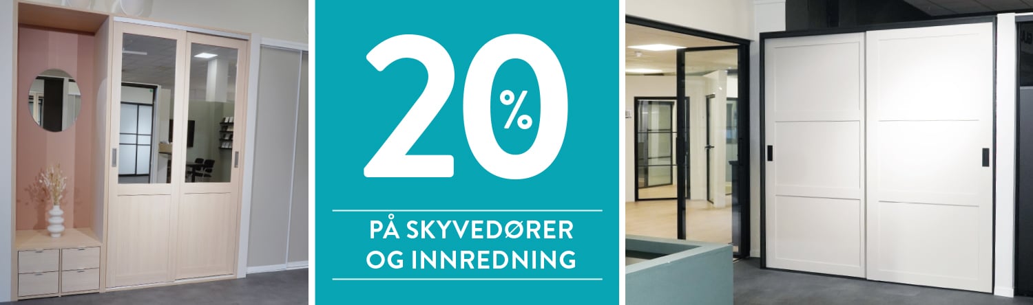 Order by September 30, 2024 and get a 20% discount on sliding doors tailored to you and your home. The offer applies to our stores in: Oslo, Bærum & Asker, Lørenskog and Østfold.