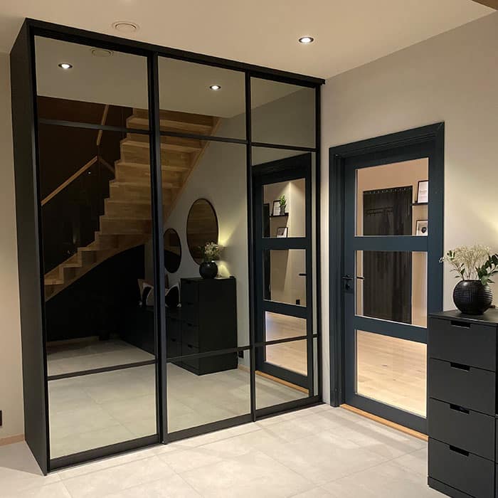 Dark sliding doors with black details are very dominant in the trend picture right now. At Garderobemekka you can get the style you want.