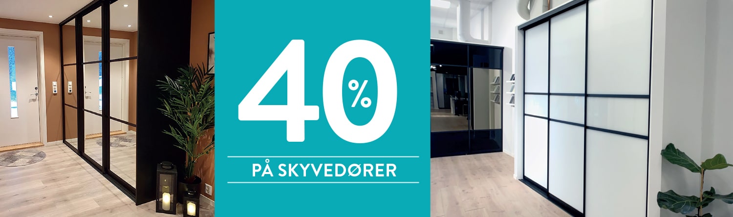 Order by November 30, 2023 and get a 40% discount on sliding doors tailored to you and your home. The offer applies to all our stores: Trondheim, Oslo, Bærum & Asker, Lørenskog, Fredrikstad and Forus.