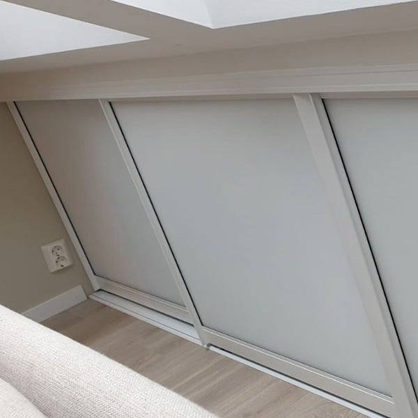 Sliding doors against sloping ceilings in a loft apartment in Oslo